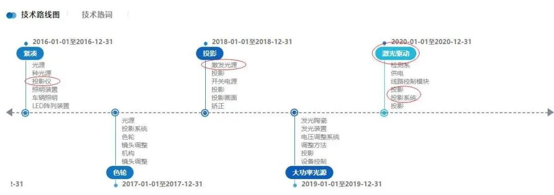 光峰科技的技术涵盖光学、电子、材料、物理、机械设计、精密制造等多个领域,从其技术路线可以看到,围绕投影装置技术研发持续聚焦,获得丰富的技术积累。基于打通丰富的应用场景需求,在激发光源相关技术积累、激光驱动技术持续积累,技术延续性较强。