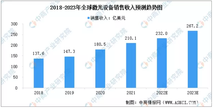 2023年全球激光设备市场销售收入有望达到267.2亿美元
