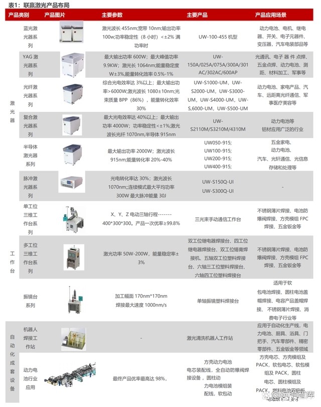联赢激光成立于2005年,是国内领先的精密激光焊接设备及自动化解决方案供应商,专注于精密激光焊接机及激光焊接自动焊接自动化成套设备的研发、生产、销售。公司产品广泛应用于动力电池、汽车制造、五金家电以及消费电子等制造业领域,客户群体覆盖包括宁德时代、国轩高科、比亚迪等行业内知名企业。