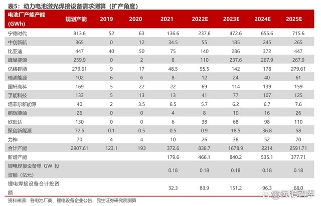 3.2扩产角度看动力电池激光焊接设备市场空间