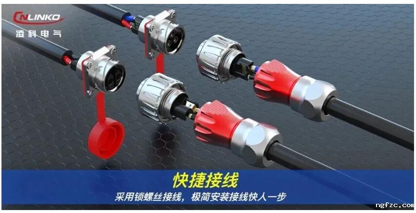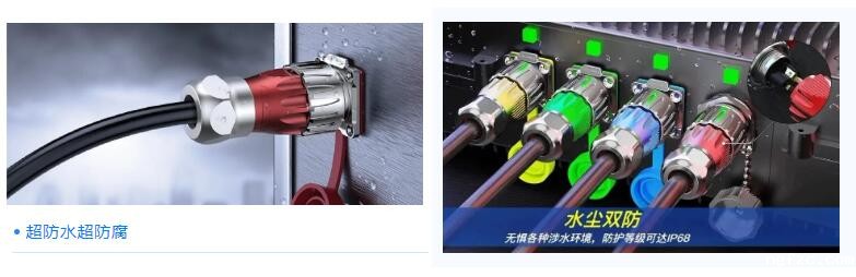 凌科DH系列工业级连接器,采用工业级防水设计和密封圈结构密封,标配IP65/IP67防护等级,可选IP68;全合金外壳,严密连接,实现高防腐性,盐雾测试时间≥48H,可满足电机在工厂、户外等工作场景下的防水防腐技术要求;