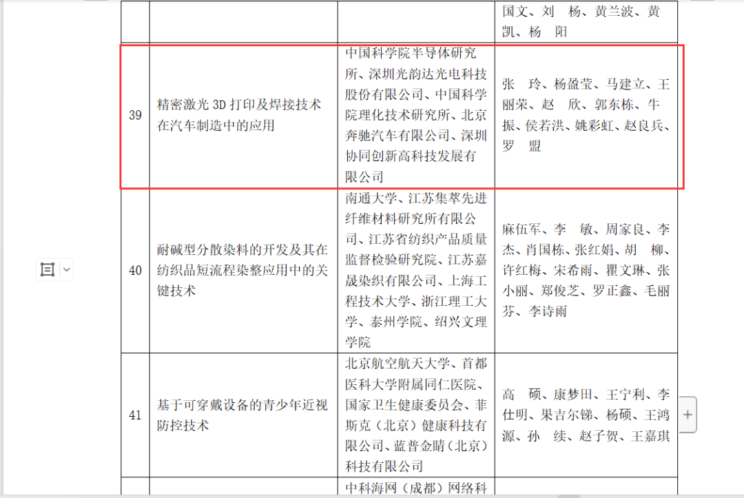 该项目团队针对“精密激光3D打印及焊接技术在汽车制造中的应用”的科学问题和关键技术,经过十余年攻关,取得了一系列原创性成果,促进了我国激光3D打印及焊接技术在汽车制造领域的快速发展,提升了该技术在汽车制造领域中科技创新的引领性和影响力,达到国际领先水平。