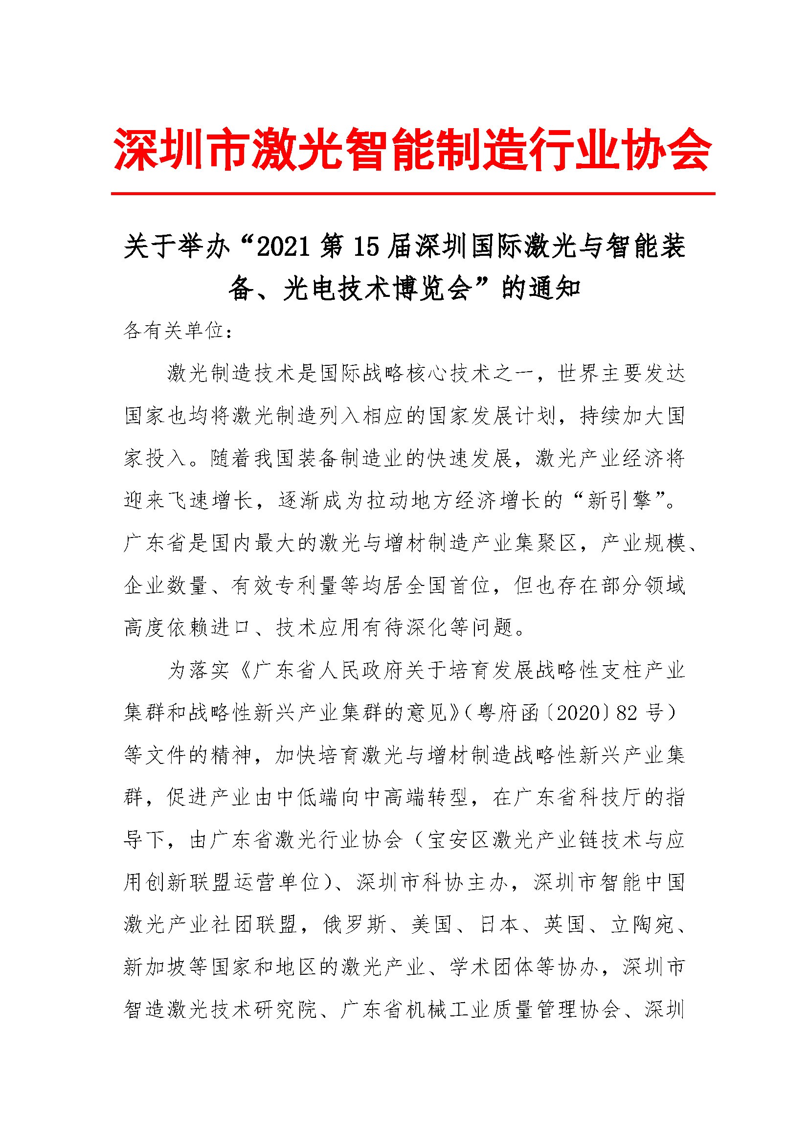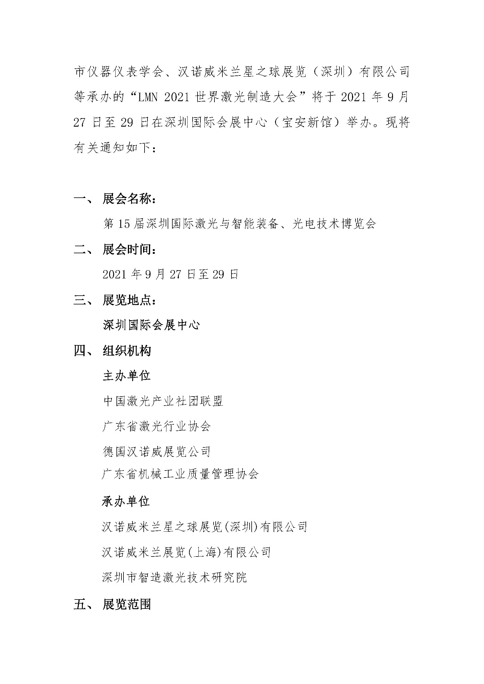 关于举办“2021 第 15 届深圳国际激光与智能装 备、光电技术博览会”的通知
