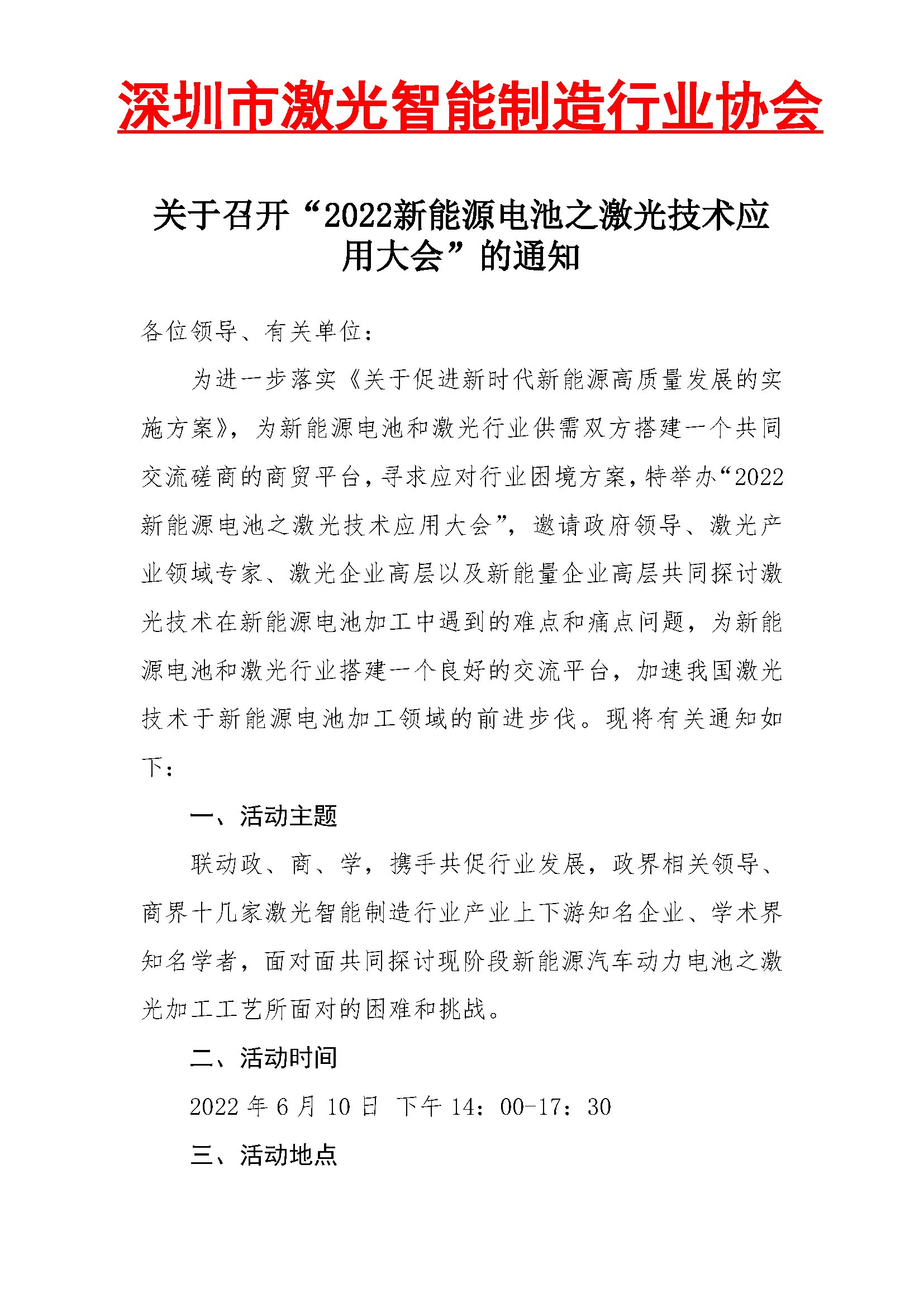 关于召开“2022新能源电池之激光技术应 用大会”的通知