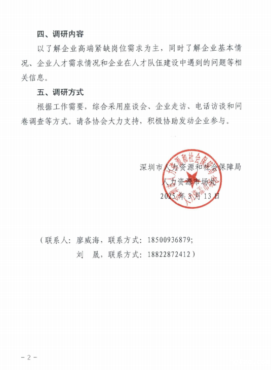 为贯彻落实深圳市委《关于实施更加积极更加开放更加有效的人才政策促进人才高质量发展的意见》,加快制定市各重点产业高端紧缺岗位清单,解决我市重点产业人才需求痛点,深圳市人力资源和社会保障局就“深圳市‘20+8’重点产业高端紧缺岗位清单”项目开展走访调研工作,深圳市先进制造业促进会将协助人社局组织深圳市高端装备与仪器相关单位参加调研座谈会。