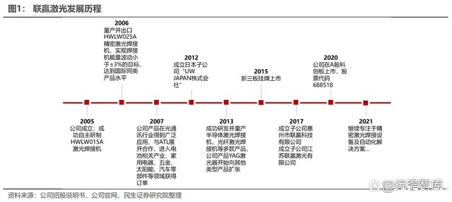 2011年,公司完成股改更名为深圳市联赢激光股份有限公司,并于2012年成立子公司惠州市联赢激光有限公司以及UW JAPAN株式会社。2015年联赢激光新三板挂牌上市。