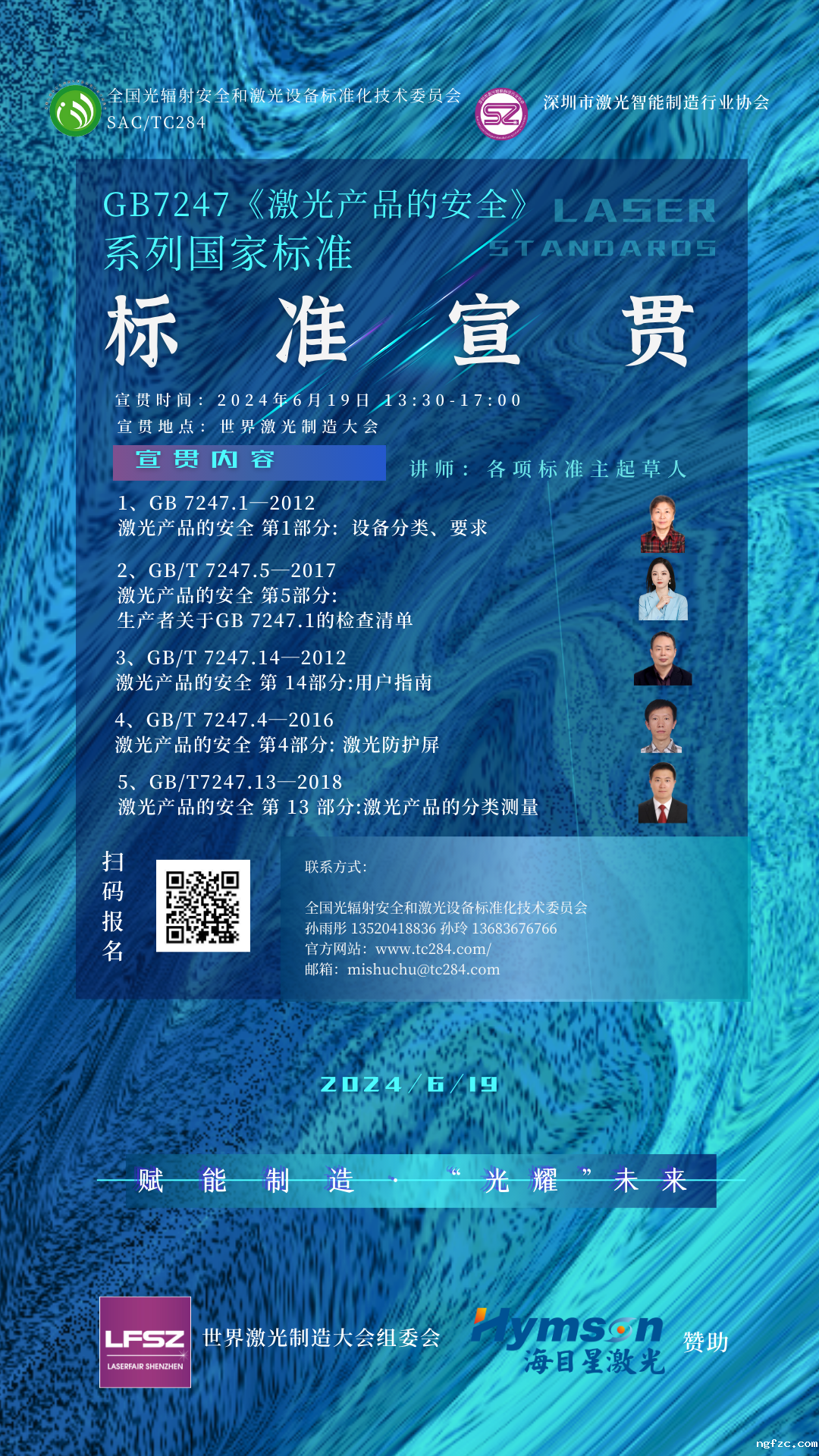 全国光辐射安全和激光设备标准化技术委员会(SAC/TC284)将于2024年6月19日13:30至17:00在深圳国际会展中心(宝安)9号馆2层9C会议室举办5项《激光产品的安全》国家标准宣贯。