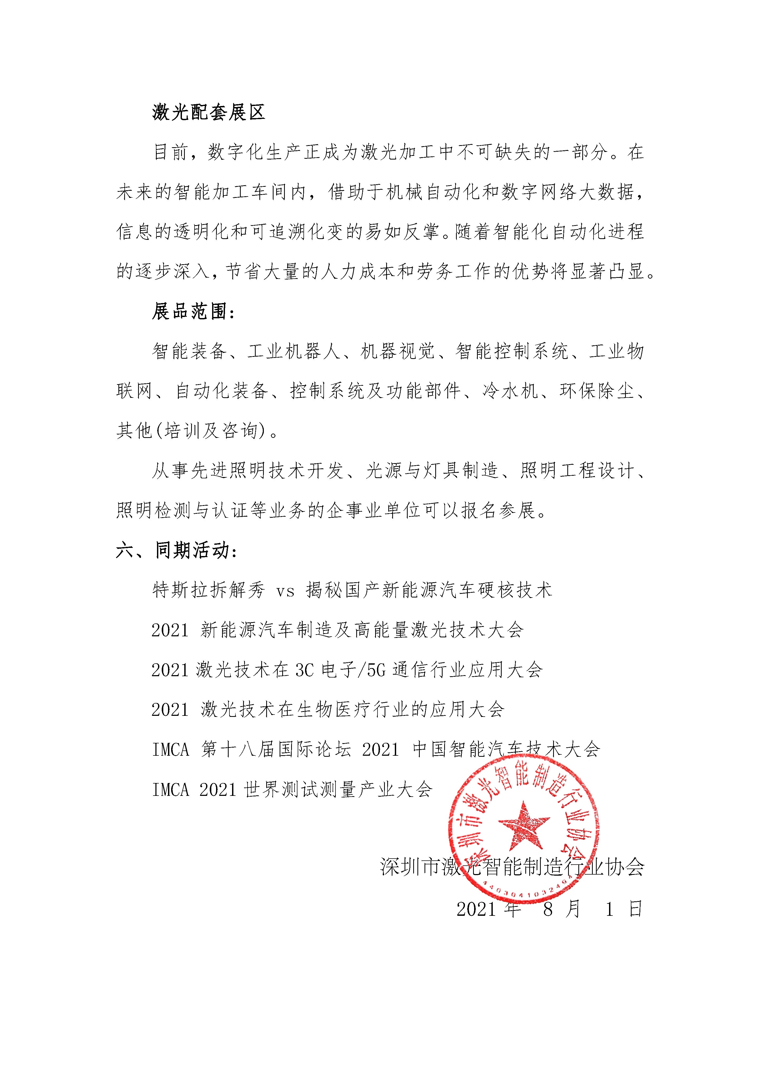关于举办“2021 第 15 届深圳国际激光与智能装 备、光电技术博览会”的通知