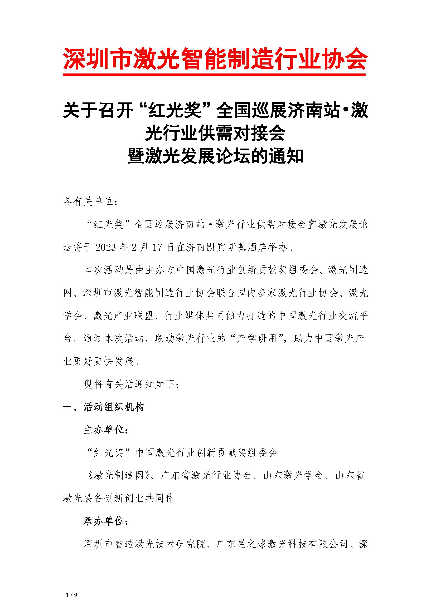关于召开“红光奖”激光行业供需对接会暨激光发展论坛的通知