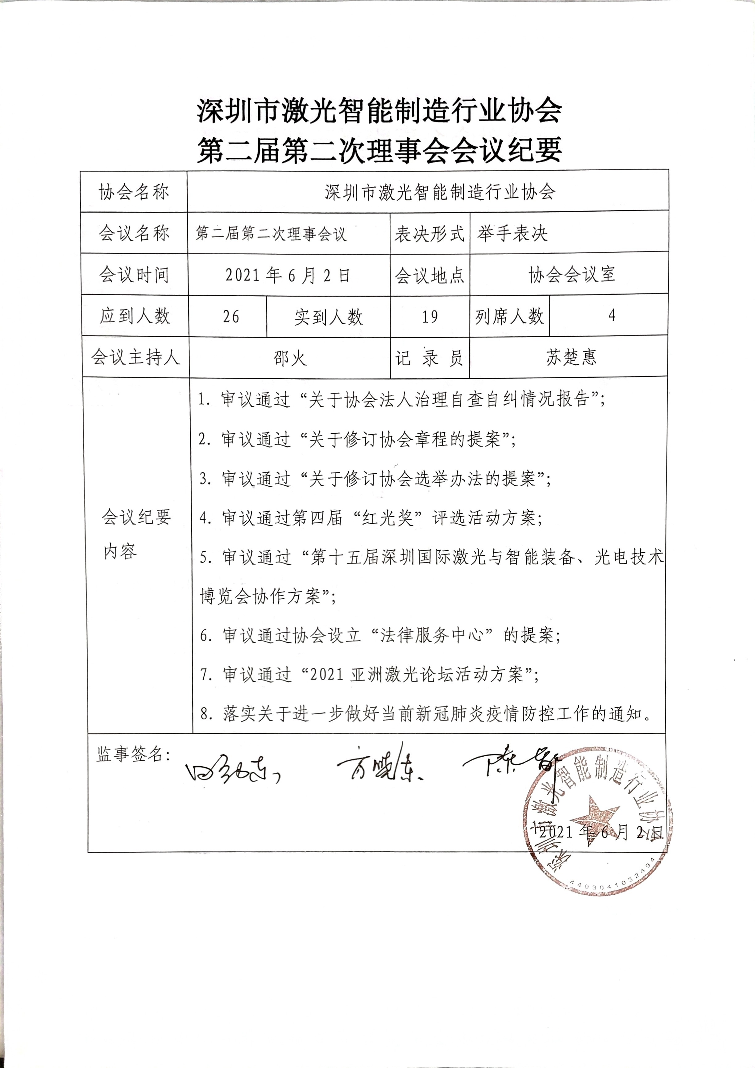 深激协二届二次理事会纪要