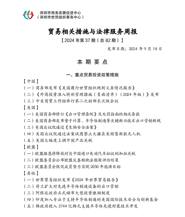 深圳市商务发展促进中心:贸易相关措施与法律服务周报(总 82 期)