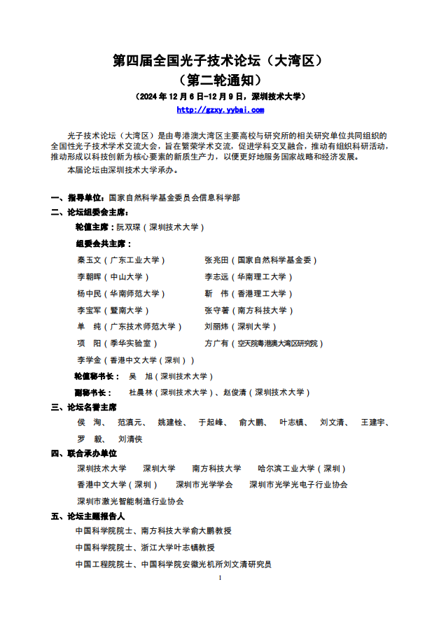 第四届全国光子技术论坛(大湾区) (第二轮通知)