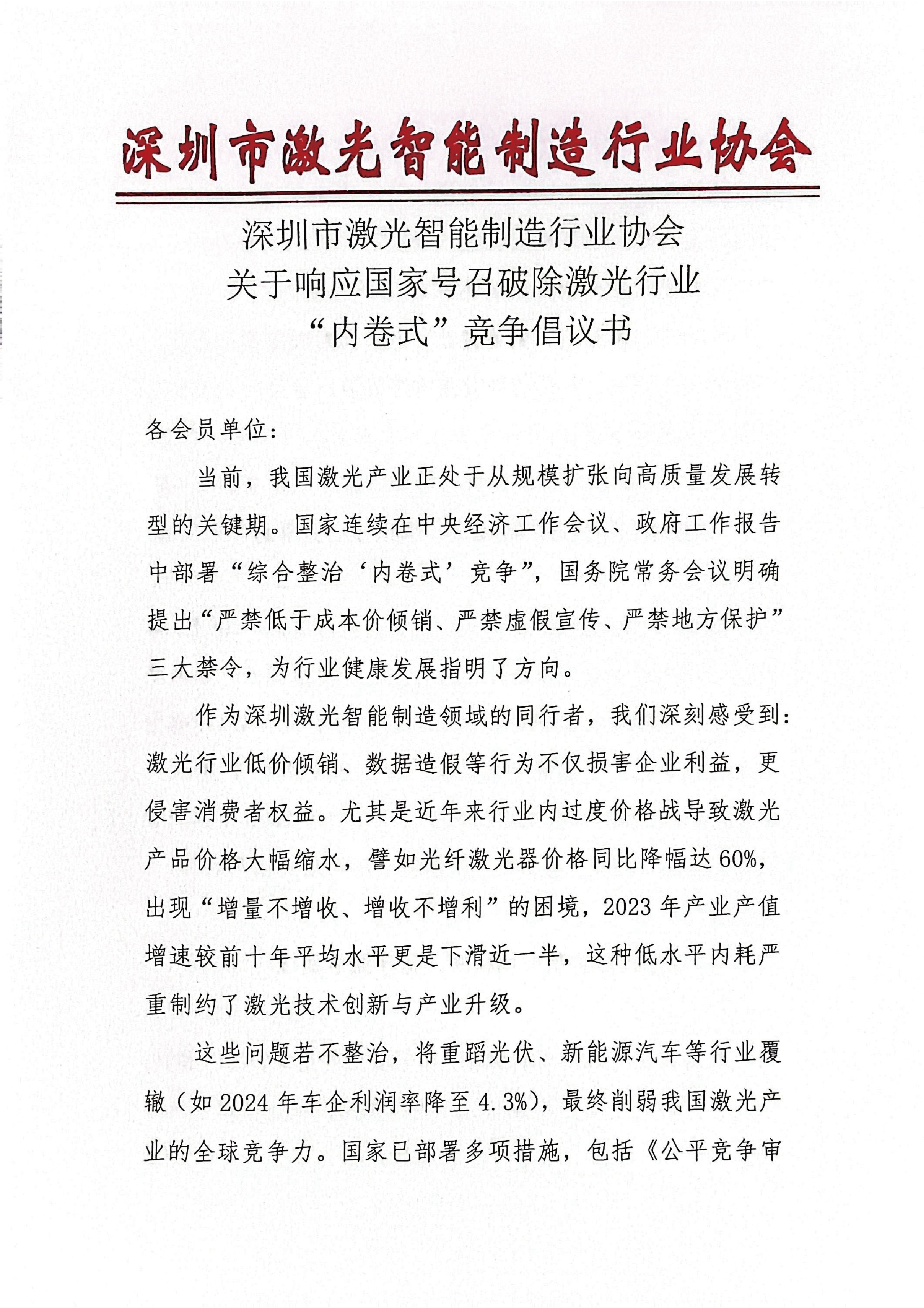 taptap官网客服关于响应国家号召破除激光行业“内卷式”竞争倡议书