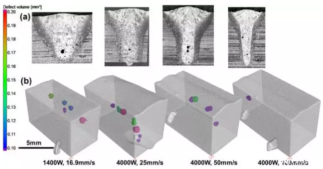 该研究认为,匙孔激光焊接时,气孔可能是匙孔后面流体湍流的结果,相关的雷诺数越大,气孔形成的可能性就越高。对于这种流体流动控制的气孔,降低匙孔附近流体流动的雷诺数,可以有效地减少或避免气孔。